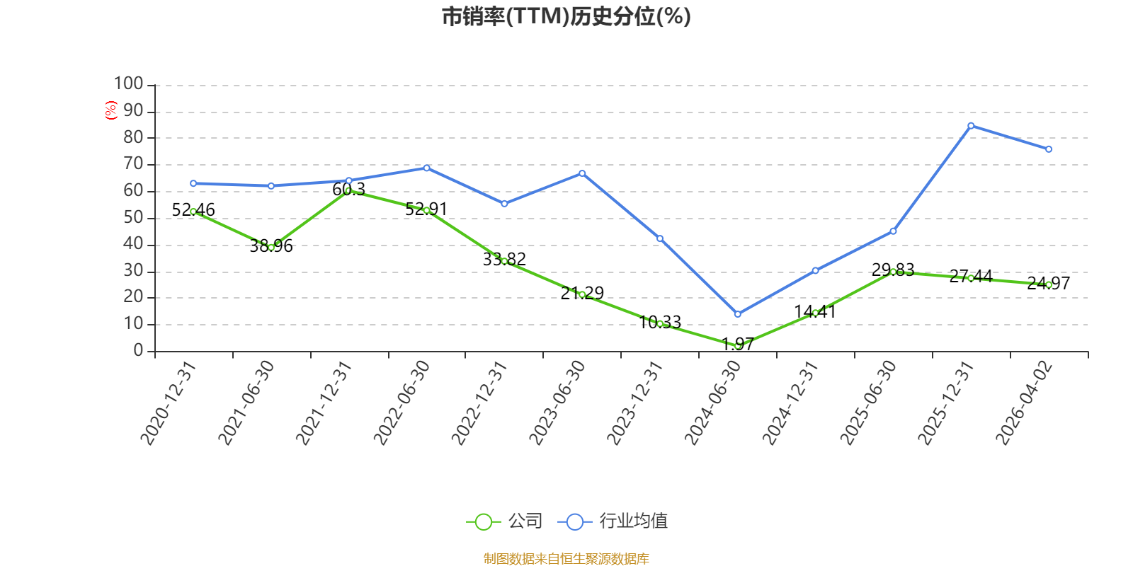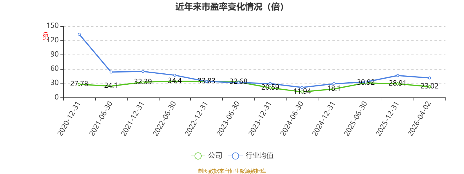 以4月2日收盘价计算,星帅尔目前市盈率(TTM)约为23.02倍,市净率(LF)约2倍,市销率(TTM)约2.13倍。