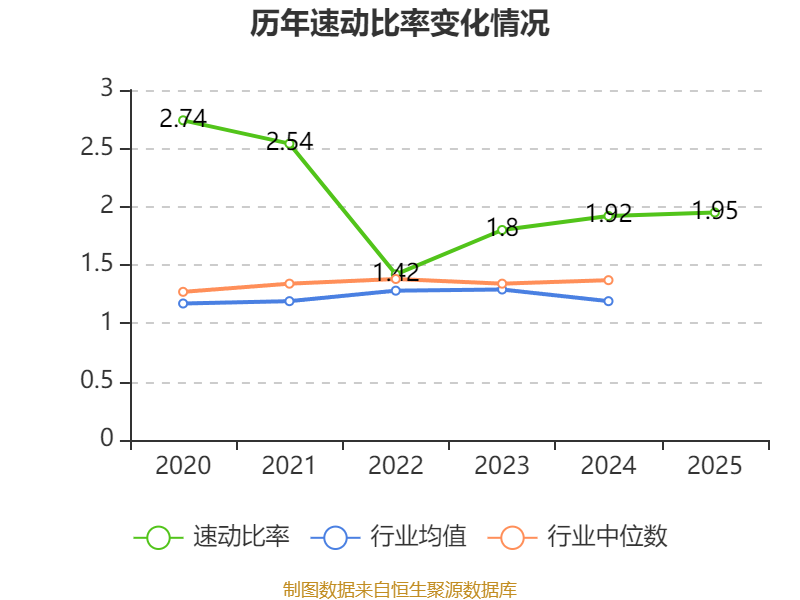 2025年,公司流动比率为2.21,速动比率为1.95。