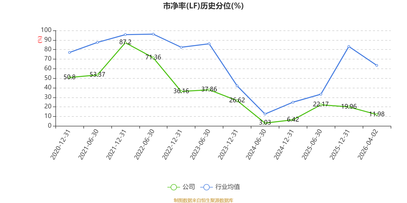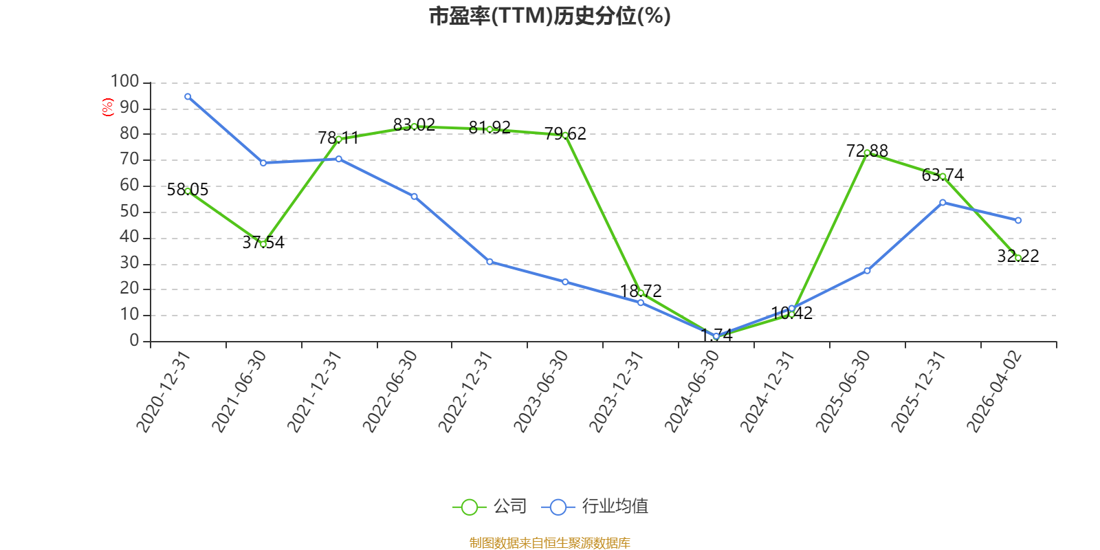 市盈率、市净率为负时,不显示当期分位数,会导致折线图中断。