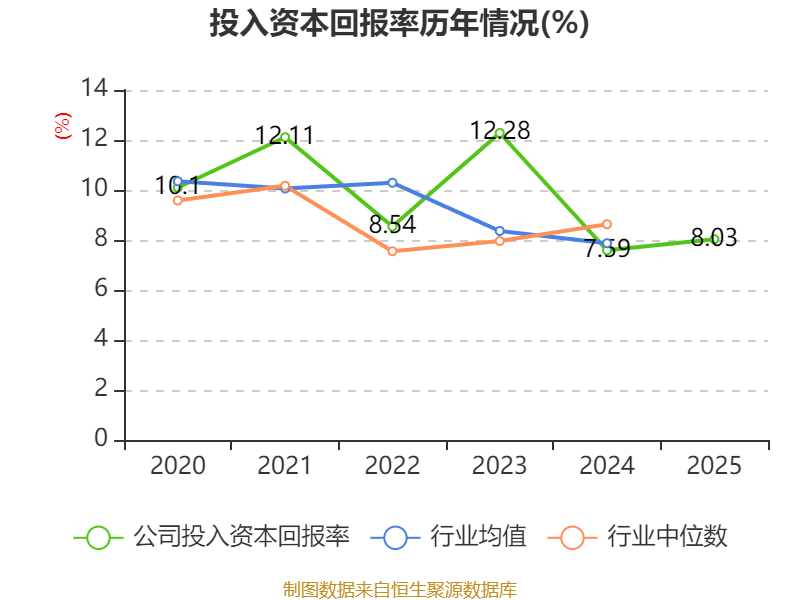 数据显示,2025年公司加权平均净资产收益率为9.36%,较上年同期上升1.11个百分点。公司2025年投入资本回报率为8.03%,较上年同期上升0.44个百分点。