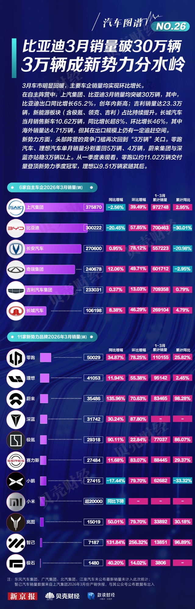 汽车图谱|比亚迪3月销量破30万辆,3万辆成新势力分水岭