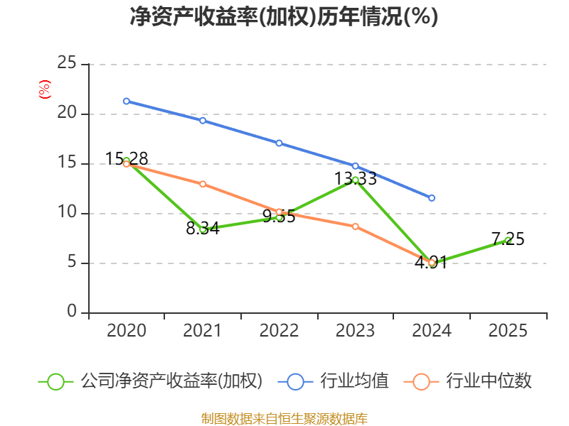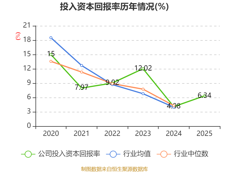 数据显示,2025年公司加权平均净资产收益率为7.25%,较上年同期上升2.34个百分点。公司2025年投入资本回报率为6.34%,较上年同期上升2.26个百分点。