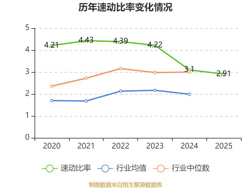 2025年,公司流动比率为3.71,速动比率为2.91。