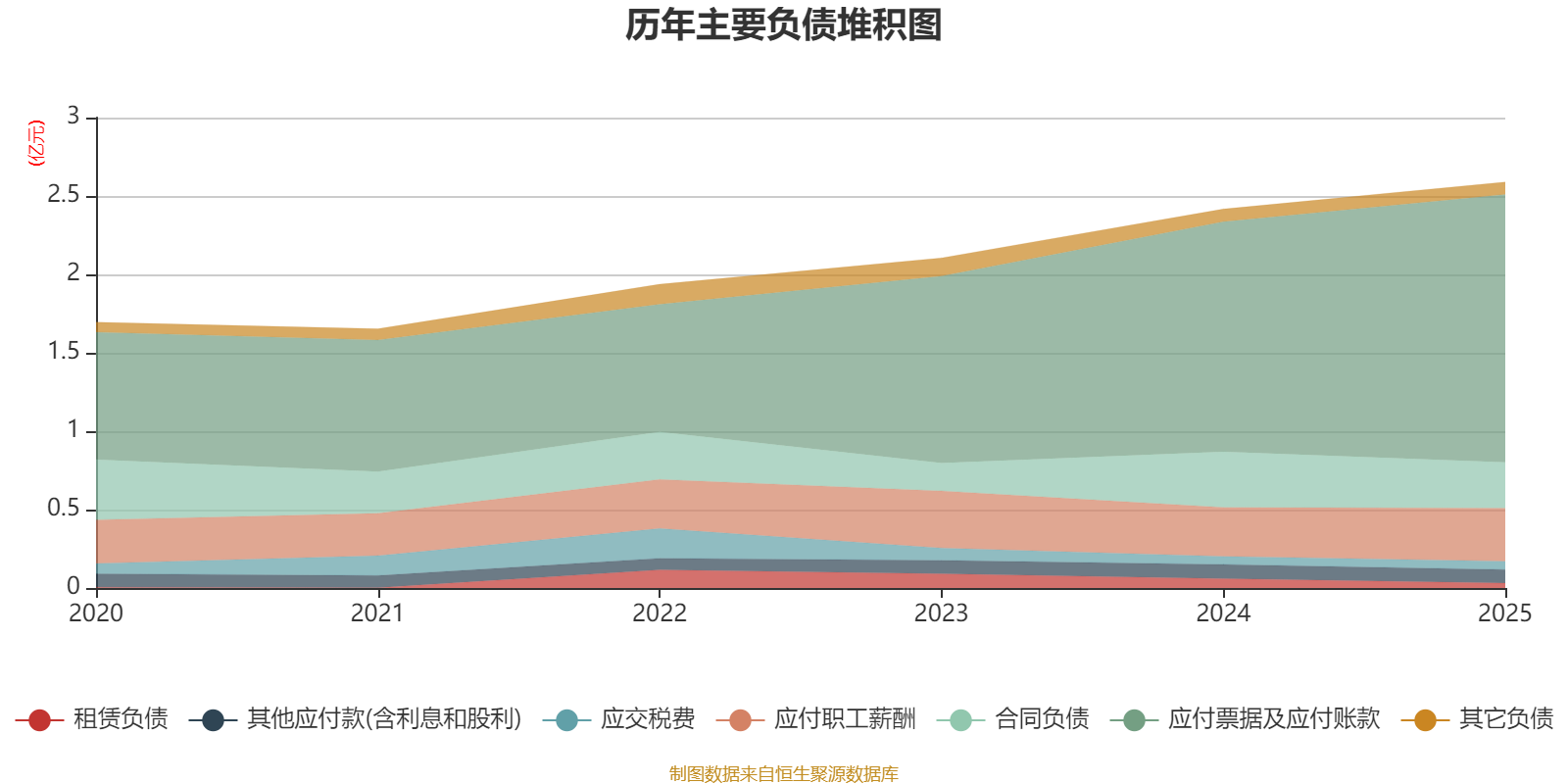 负债重大变化方面,截至2025年末,公司应付票据及应付账款较上年末增加16.44%,占公司总资产比重上升1.05个百分点;合同负债较上年末减少17.84%,占公司总资产比重下降0.56个百分点;租赁负债较上年末减少48.91%,占公司总资产比重下降0.22个百分点;其他应付款(含利息和股利)较上年末减少5.07%,占公司总资产比重下降0.07个百分点。