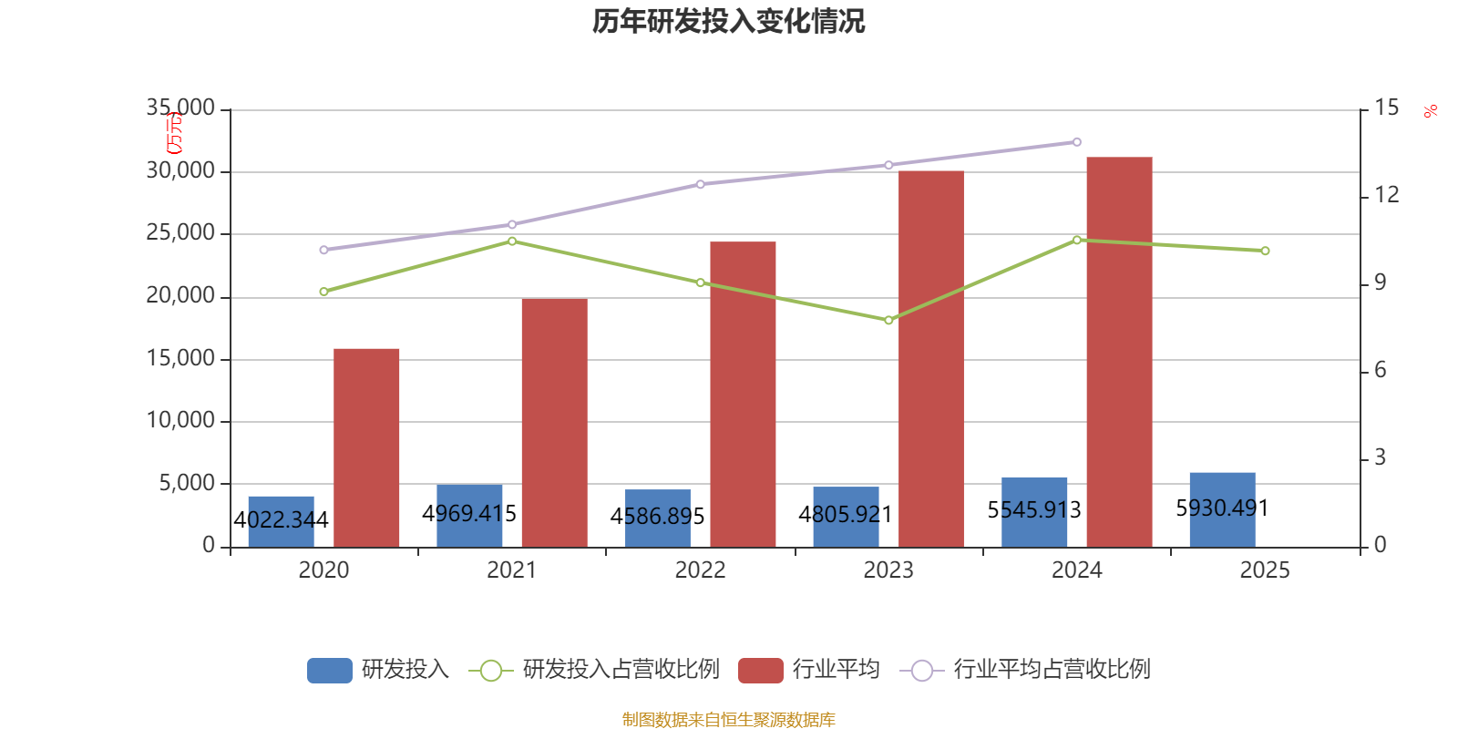 2025年全年,公司研发投入金额为5930.49万元,同比增长6.93%;研发投入占营业收入比例为10.15%,相比上年同期下降0.37个百分点。此外,公司全年研发投入资本化率为0%。