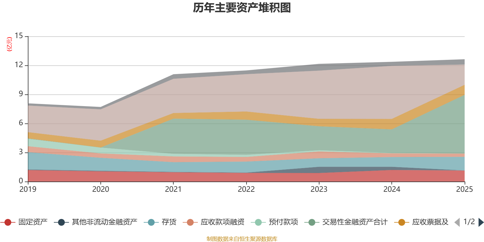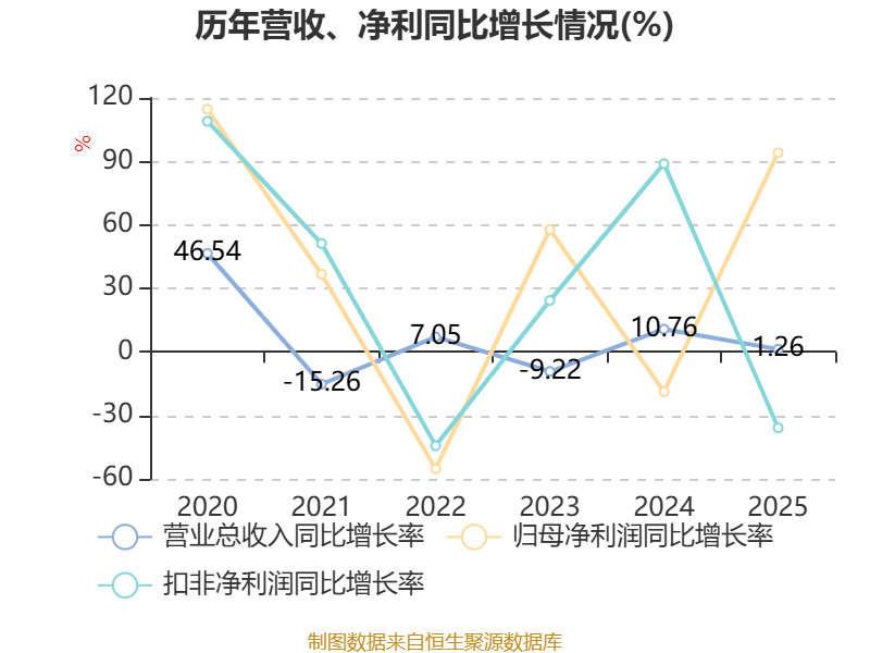资产重大变化方面,截至2025年末,公司交易性金融资产合计较上年末增加150.41%,占公司总资产比重上升28.47个百分点;货币资金较上年末减少61.82%,占公司总资产比重下降27.8个百分点;存货较上年末增加40.3%,占公司总资产比重上升3.04个百分点;其他非流动金融资产较上年末减少97.45%,占公司总资产比重下降2.56个百分点。