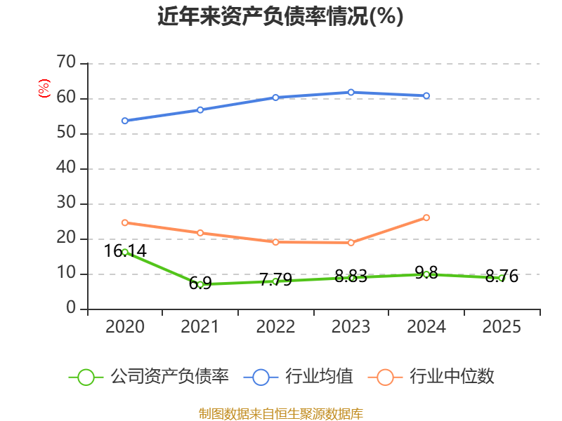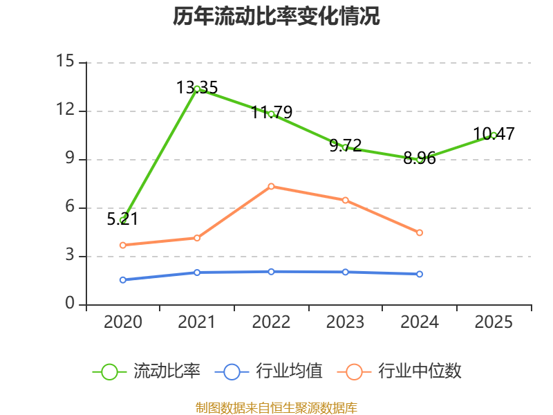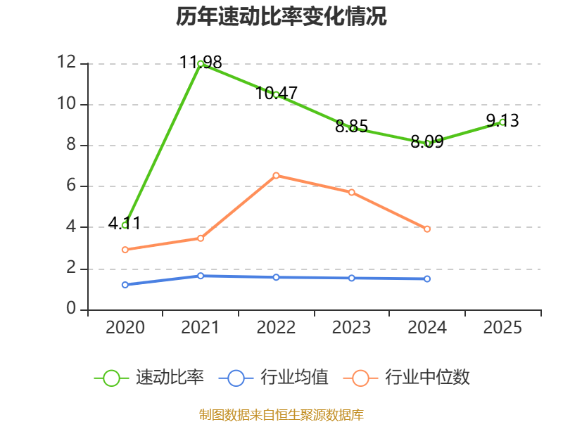 2025年,公司流动比率为10.47,速动比率为9.13。