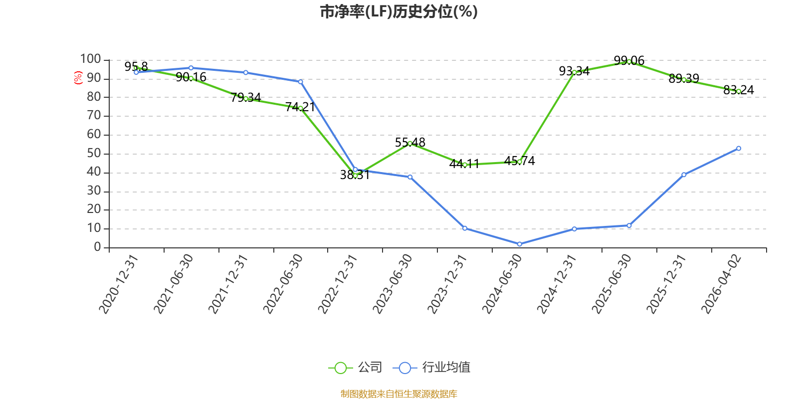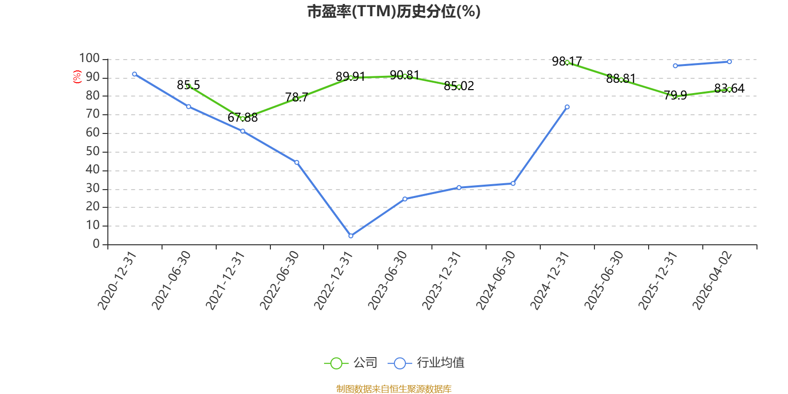 市盈率、市净率为负时,不显示当期分位数,会导致折线图中断。