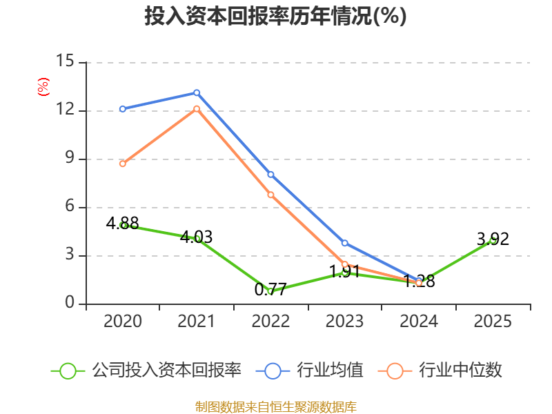 数据显示,2025年公司加权平均净资产收益率为4.38%,较上年同期上升2.1个百分点。公司2025年投入资本回报率为3.92%,较上年同期上升2.64个百分点。
