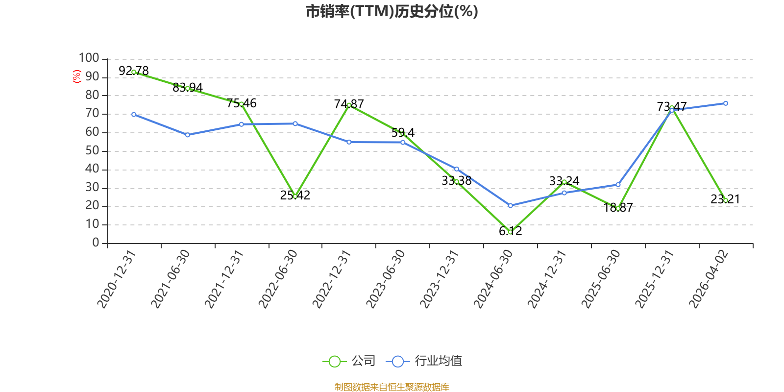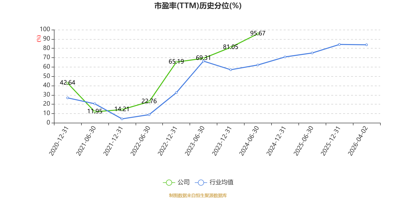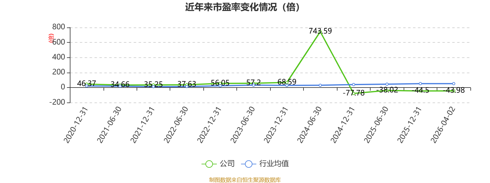 以4月2日收盘价计算,蒙泰高新目前市盈率(TTM)约为-43.98倍,市净率(LF)约2.67倍,市销率(TTM)约5.26倍。