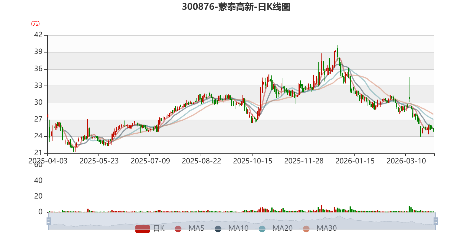 值得注意的是,中登公司数据显示,截至2026年3月27日,蒙泰高新14.69%股份处于质押状态。年报显示,第二大股东郭鸿江质押1410万股公司股份,占其全部持股的98.5%;第四大股东郭清河质押187.2万股公司股份,占其全部持股的100%;第四大股东郭丽如质押187.2万股公司股份,占其全部持股的100%。