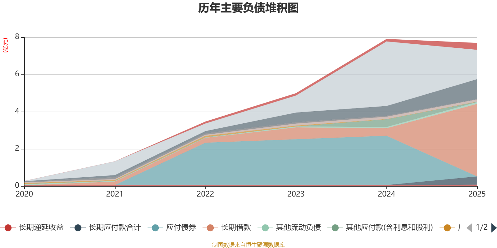 负债重大变化方面,截至2025年末,公司长期借款较上年末增加871.91%,占公司总资产比重上升18.24个百分点;应付债券较上年末减少100%,占公司总资产比重下降15.9个百分点;短期借款较上年末减少54.43%,占公司总资产比重下降12.42个百分点;应付票据及应付账款较上年末增加104.65%,占公司总资产比重上升2.53个百分点。