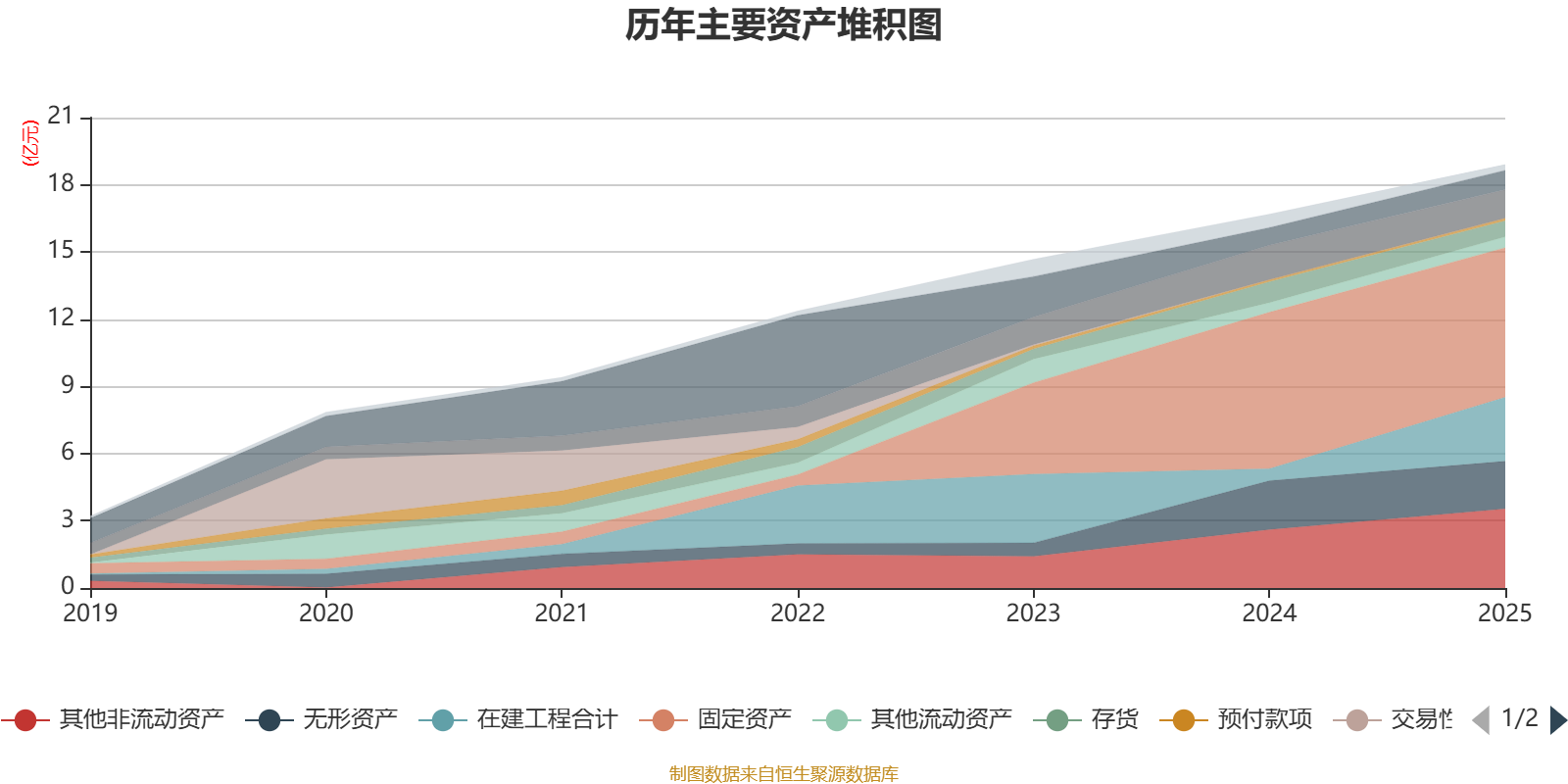 资产重大变化方面,截至2025年末,公司在建工程合计较上年末增加427.84%,占公司总资产比重上升11.86个百分点;固定资产较上年末减少4.37%,占公司总资产比重下降6.52个百分点;其他非流动资产较上年末增加35.71%,占公司总资产比重上升3.09个百分点;应收票据及应收账款较上年末减少17.15%,占公司总资产比重下降2.47个百分点。