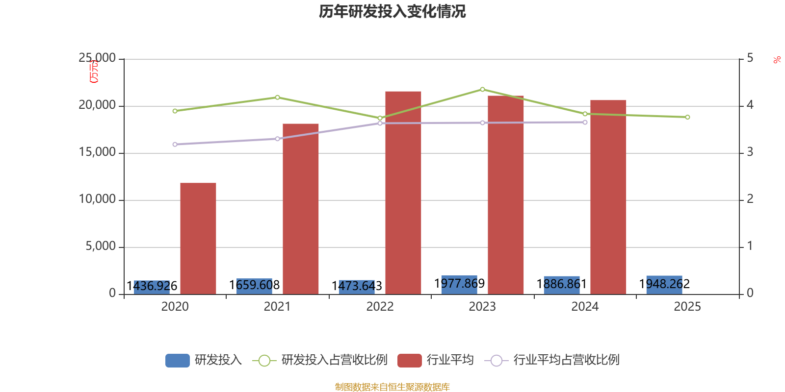 2025年全年,公司研发投入金额为1948.26万元,同比增长3.25%;研发投入占营业收入比例为3.76%,相比上年同期下降0.07个百分点。此外,公司全年研发投入资本化率为0%。
