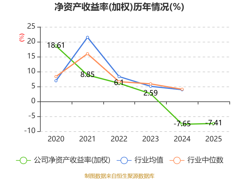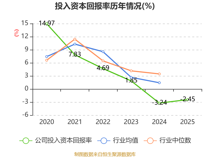 数据显示,2025年公司加权平均净资产收益率为-7.41%,较上年同期上升0.24个百分点。公司2025年投入资本回报率为-2.45%,较上年同期上升0.79个百分点。