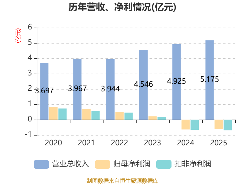 中证智能财讯蒙泰高新(300876)4月3日披露2025年年度报告。2025年,公司实现营业总收入5.18亿元,同比增长5.08%;归母净利润亏损6194.47万元,上年同期亏损6454.6万元;扣非净利润亏损7020.9万元,上年同期亏损6618.15万元;经营活动产生的现金流量净额为7894.28万元,上年同期为-3989.77万元;报告期内,蒙泰高新基本每股收益为-0.6295元,加权平均净资产收益率为-7.41%。公司2025年度分配预案为:拟向全体股东每10股转4股。