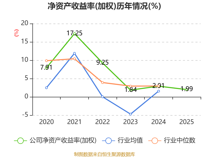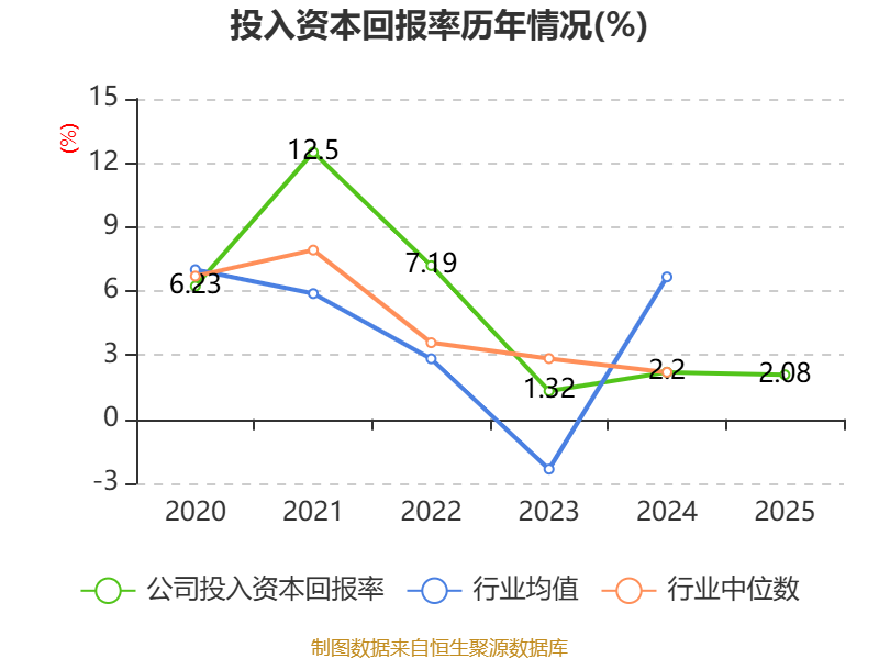 数据显示,2025年公司加权平均净资产收益率为1.99%,较上年同期下降0.92个百分点。公司2025年投入资本回报率为2.08%,较上年同期下降0.12个百分点。