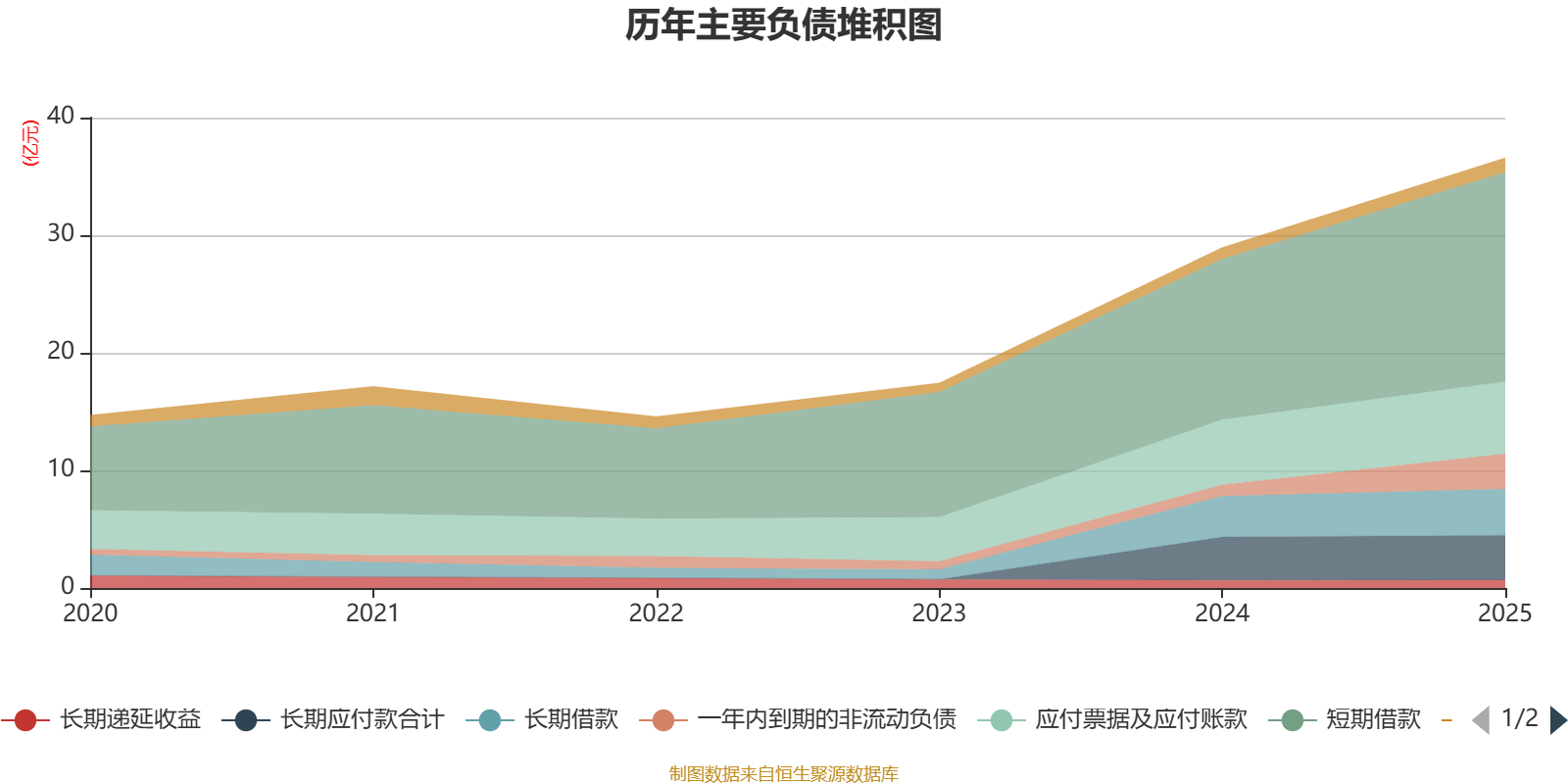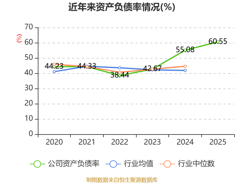 负债重大变化方面,截至2025年末,公司短期借款较上年末增加30.58%,占公司总资产比重上升3.54个百分点;一年内到期的非流动负债较上年末增加209.2%,占公司总资产比重上升3.11个百分点;长期应付款合计较上年末增加3.6%,占公司总资产比重下降0.69个百分点;应付票据及应付账款较上年末增加10.42%,占公司总资产比重下降0.42个百分点。