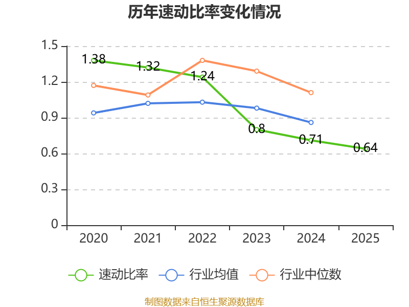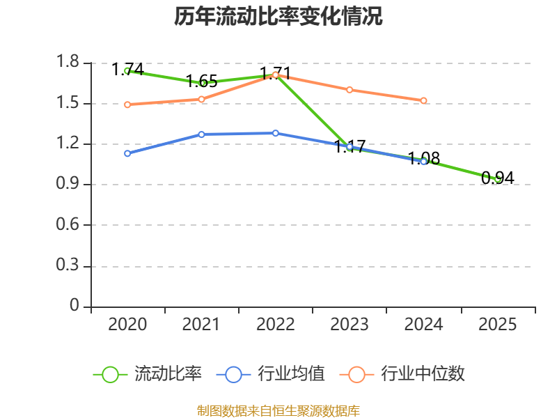 2025年,公司流动比率为0.94,速动比率为0.64。
