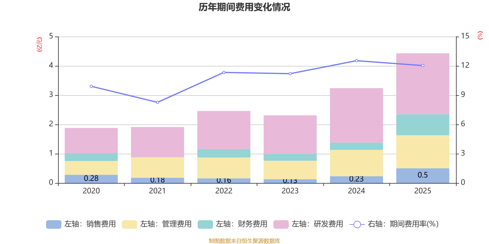 2025年全年,公司研发投入金额为2.08亿元,同比增长11.97%;研发投入占营业收入比例为5.65%,相比上年同期下降1.53个百分点。此外,公司全年研发投入资本化率为0%。