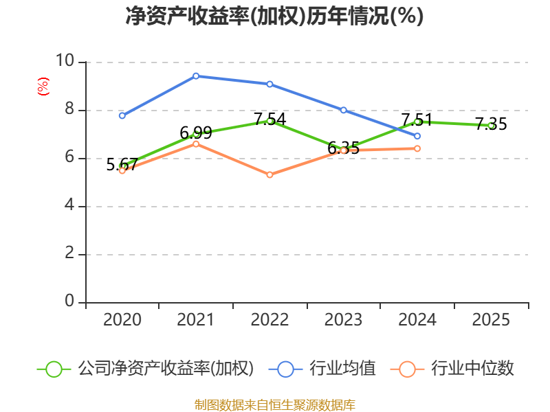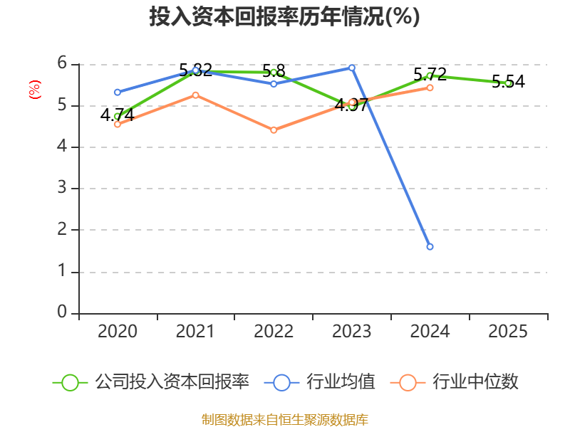 数据显示,2025年公司加权平均净资产收益率为7.35%,较上年同期下降0.16个百分点。公司2025年投入资本回报率为5.54%,较上年同期下降0.18个百分点。