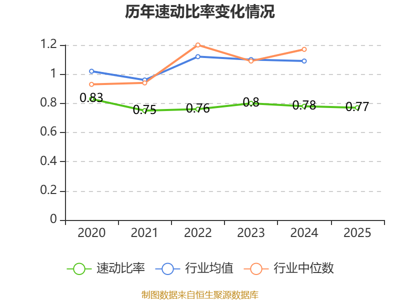 2025年,公司流动比率为0.78,速动比率为0.77。