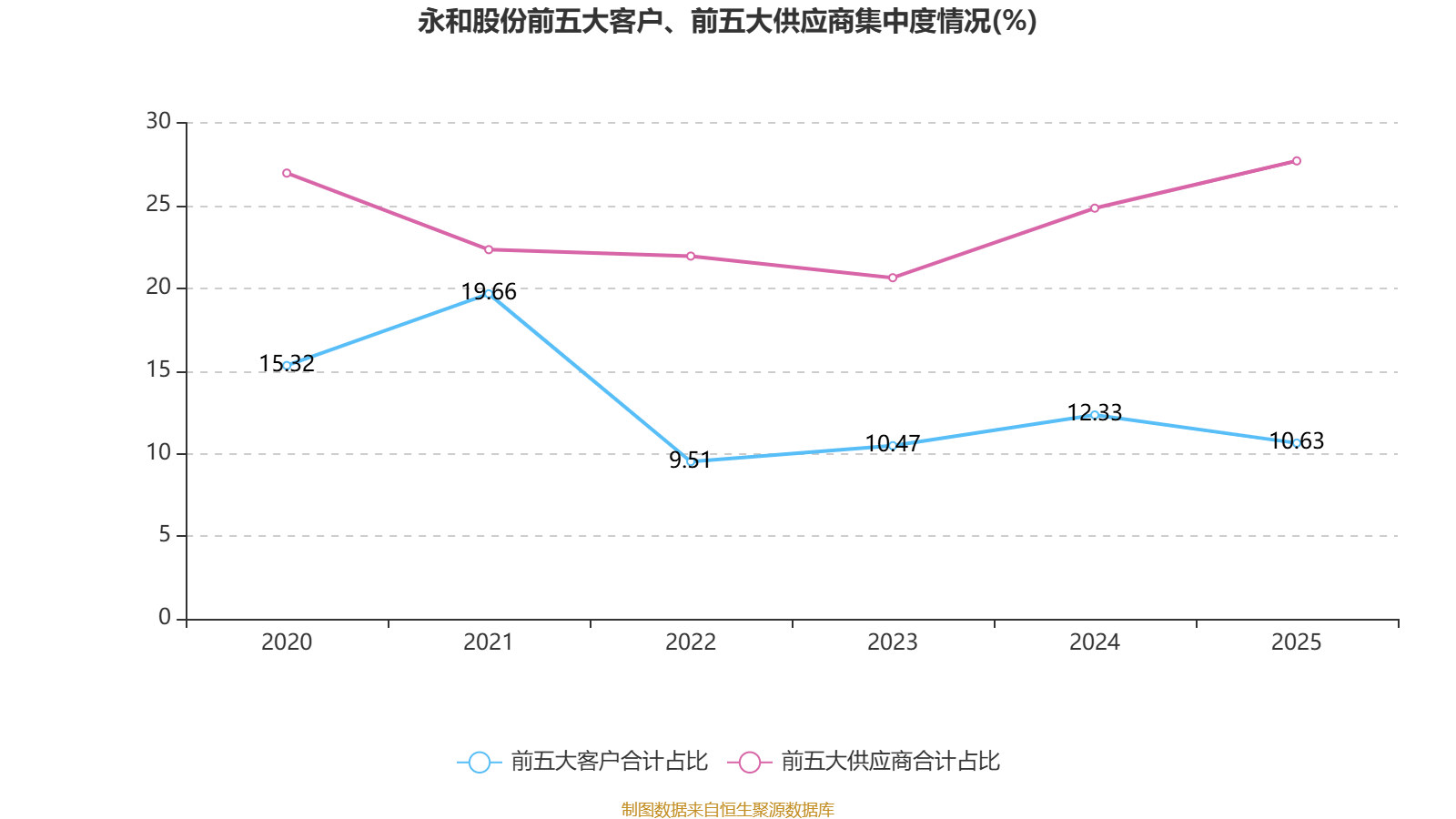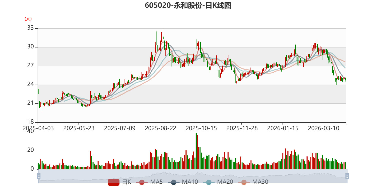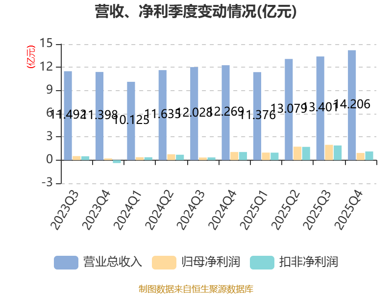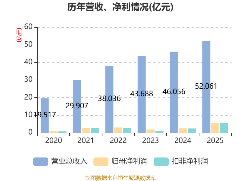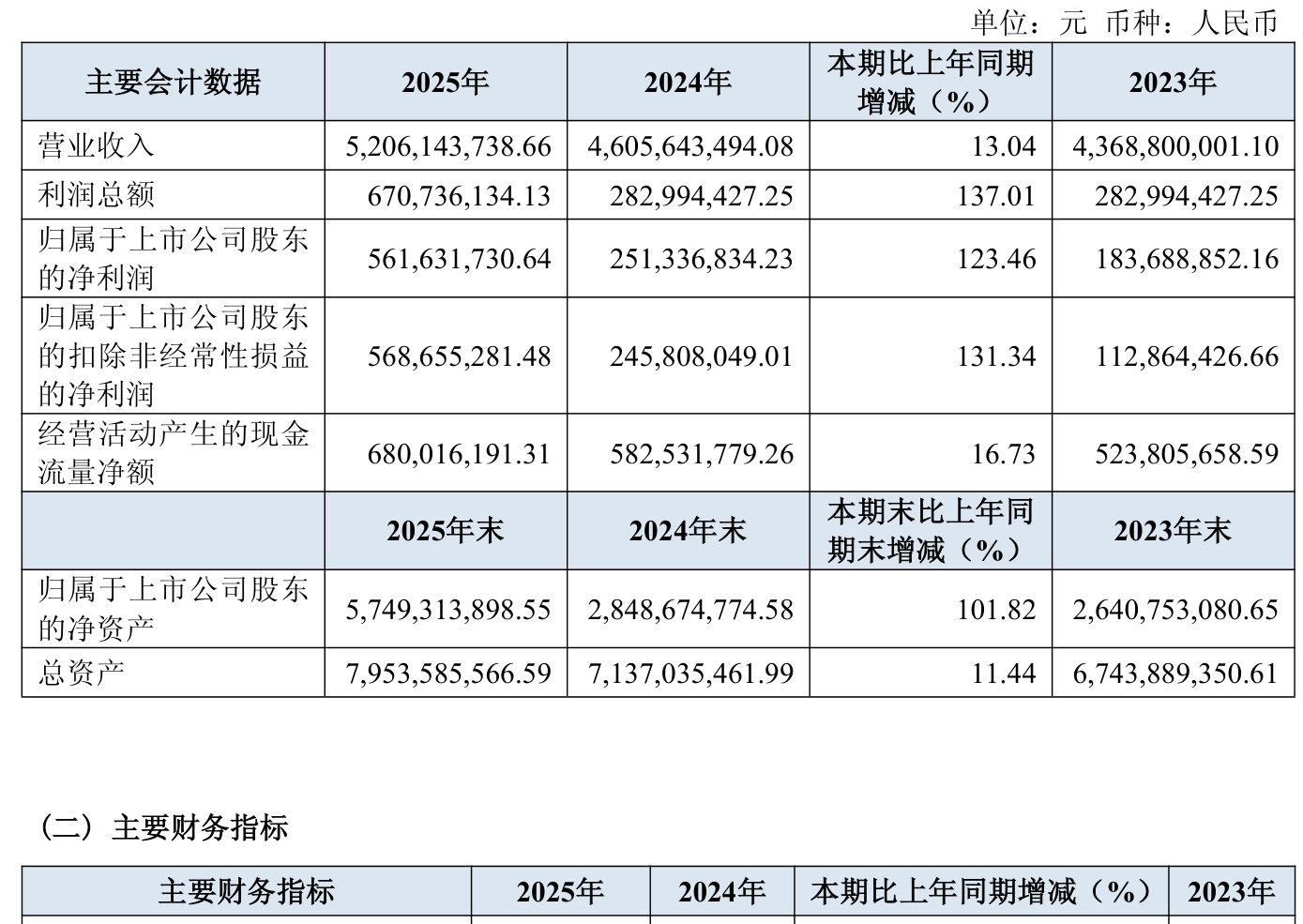 中证智能财讯永和股份(605020)4月3日披露2025年年度报告。2025年,公司实现营业总收入52.06亿元,同比增长13.04%;归母净利润5.62亿元,同比增长123.46%;扣非净利润5.69亿元,同比增长131.34%;经营活动产生的现金流量净额为6.8亿元,同比增长16.73%;报告期内,永和股份基本每股收益为1.21元,加权平均净资产收益率为12.32%。公司2025年度分配预案为:拟向全体股东每10股派现4.5元(含税)。