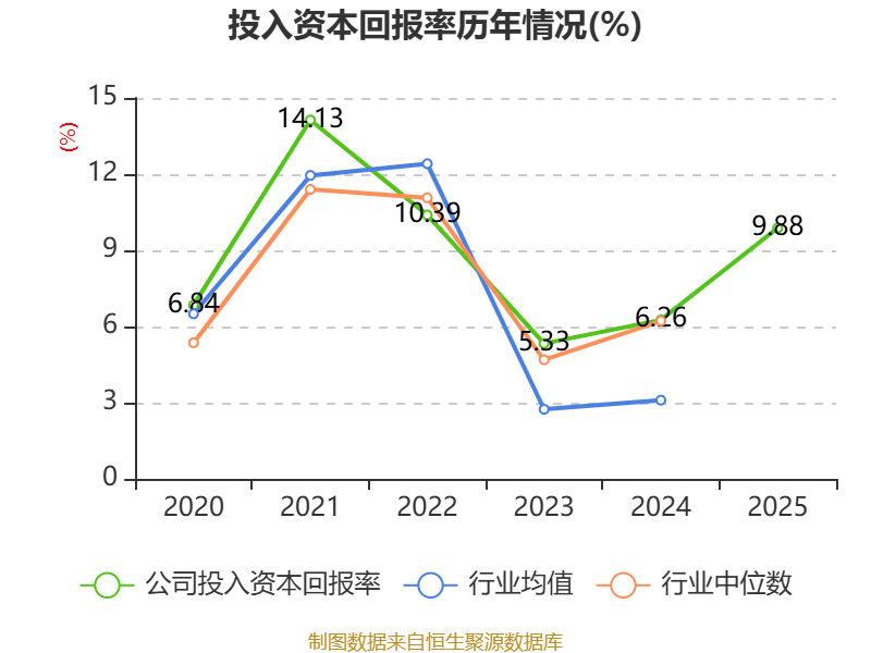 数据显示,2025年公司加权平均净资产收益率为12.32%,较上年同期上升3.13个百分点。公司2025年投入资本回报率为9.88%,较上年同期上升3.62个百分点。