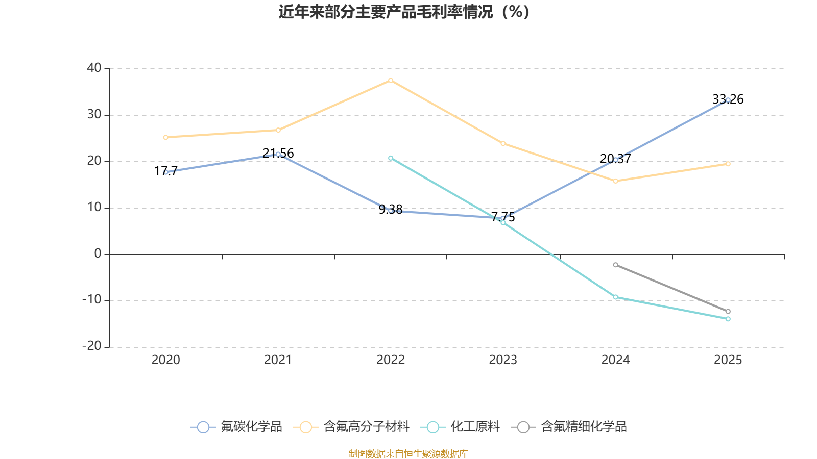 资料显示,公司主营业务为氟化学产品的研发、生产、销售,现已形成从萤石矿、氢氟酸、甲烷氯化物、氟碳化学品到含氟高分子材料、含氟精细化学品的完整产业链。