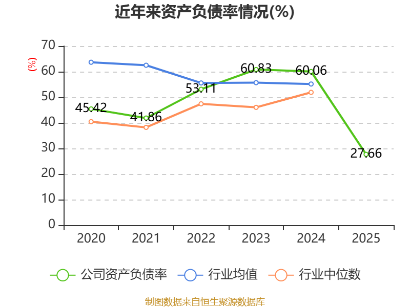 负债重大变化方面,截至2025年末,公司短期借款较上年末减少77.31%,占公司总资产比重下降12.57个百分点;应付债券较上年末减少100%,占公司总资产比重下降9.36个百分点;长期借款较上年末减少42.61%,占公司总资产比重下降5.31个百分点;应付票据及应付账款较上年末减少20.25%,占公司总资产比重下降2.98个百分点。