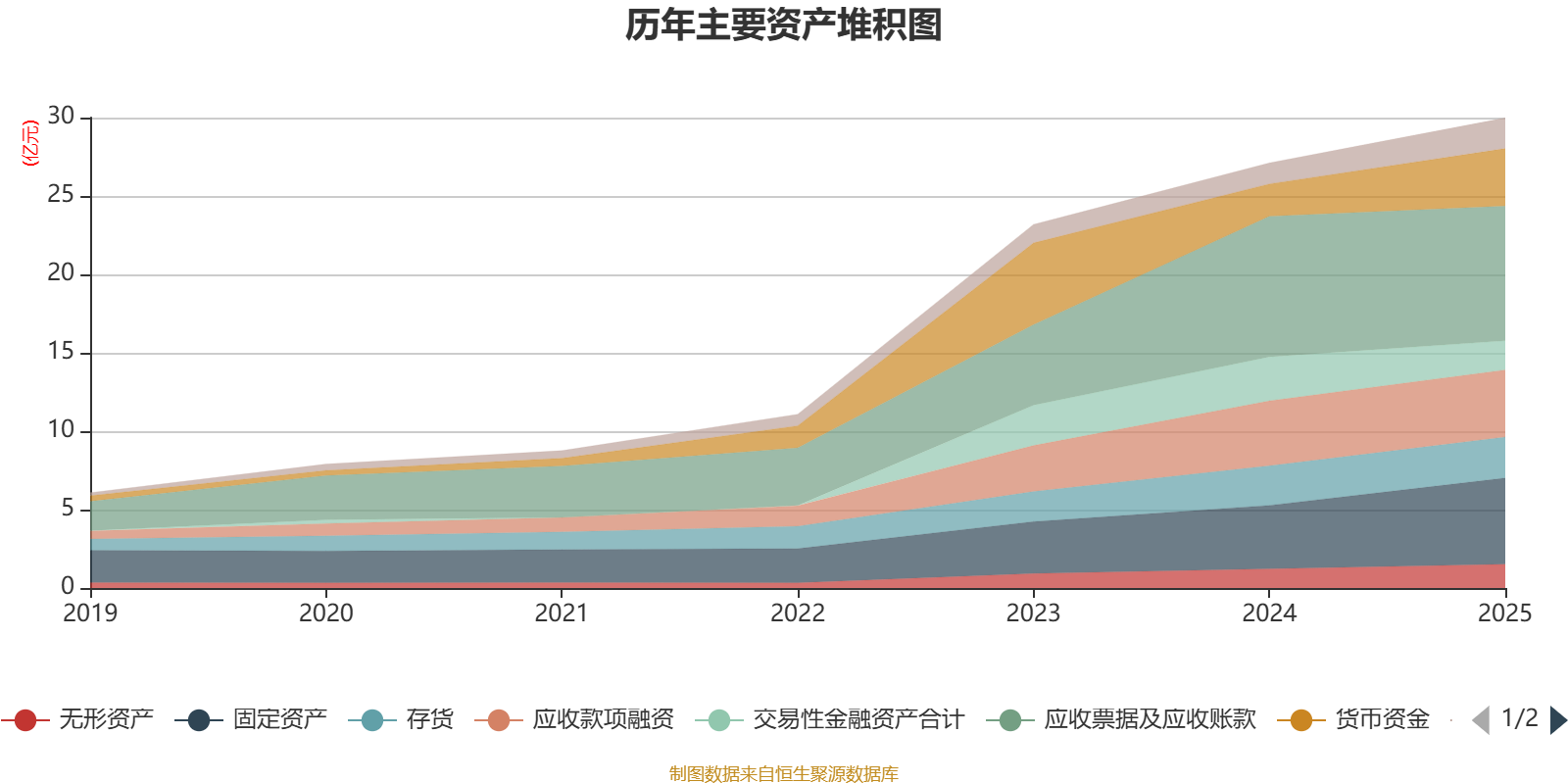 资产重大变化方面,截至2025年末,公司货币资金较上年末增加78.34%,占公司总资产比重上升4.65个百分点;应收票据及应收账款较上年末减少4.33%,占公司总资产比重下降4.47个百分点;交易性金融资产合计较上年末减少33.55%,占公司总资产比重下降4.12个百分点;固定资产较上年末增加35.99%,占公司总资产比重上升3.43个百分点。