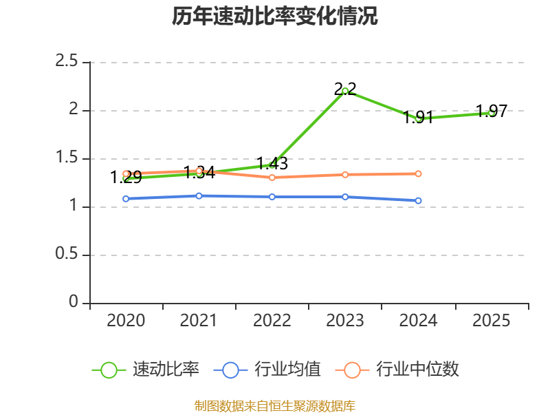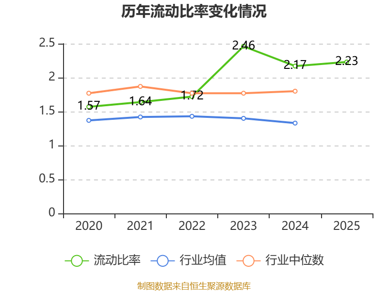 2025年,公司流动比率为2.23,速动比率为1.97。