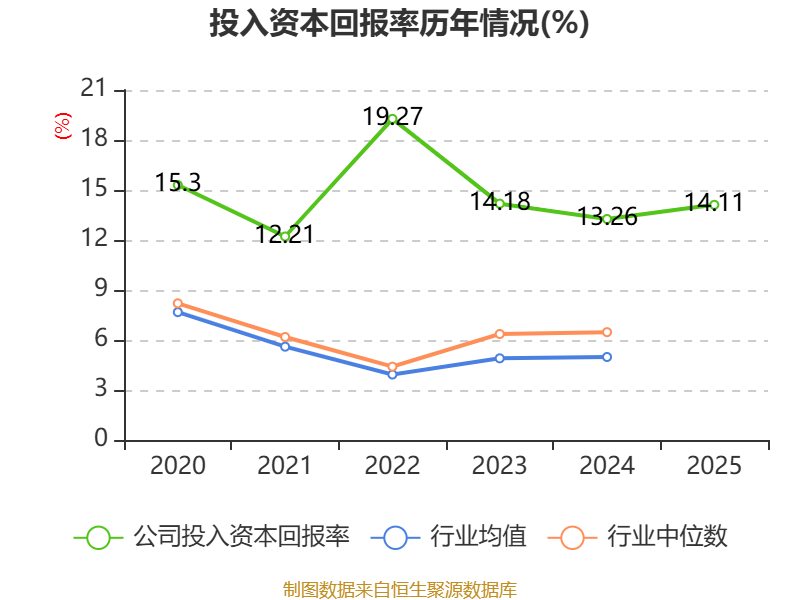 数据显示,2025年公司加权平均净资产收益率为15.31%,较上年同期上升1.12个百分点。公司2025年投入资本回报率为14.11%,较上年同期上升0.85个百分点。