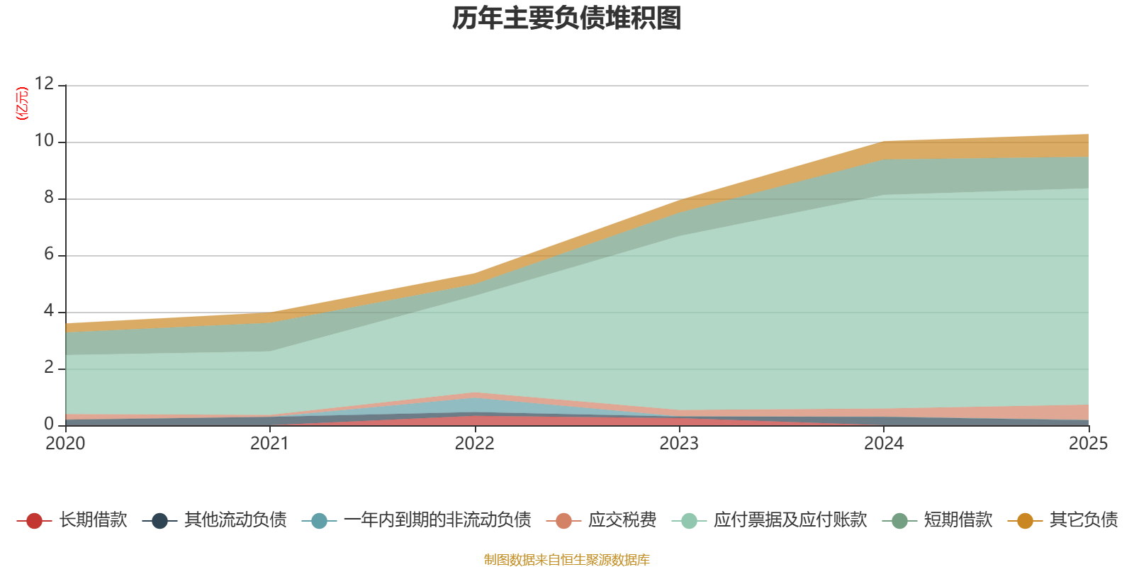 负债重大变化方面,截至2025年末,公司应付票据及应付账款较上年末增加1.25%,占公司总资产比重下降2.35个百分点;短期借款较上年末减少10.89%,占公司总资产比重下降0.9个百分点;应交税费较上年末增加86.94%,占公司总资产比重上升0.72个百分点;其他流动负债较上年末减少39.88%,占公司总资产比重下降0.49个百分点。