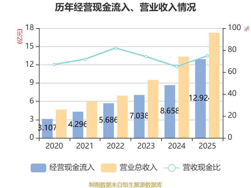 中证智能财讯福赛科技(301529)4月3日披露2025年年度报告。2025年,公司实现营业总收入17.26亿元,同比增长29.59%;归母净利润1.33亿元,同比增长35.96%;扣非净利润1.24亿元,同比增长49.99%;经营活动产生的现金流量净额为3.4亿元,上年同期为-9617.36万元;报告期内,福赛科技基本每股收益为1.59元,加权平均净资产收益率为10.15%。公司2025年度分配预案为:拟向全体股东每10股转增4股,派现1元(含税)。