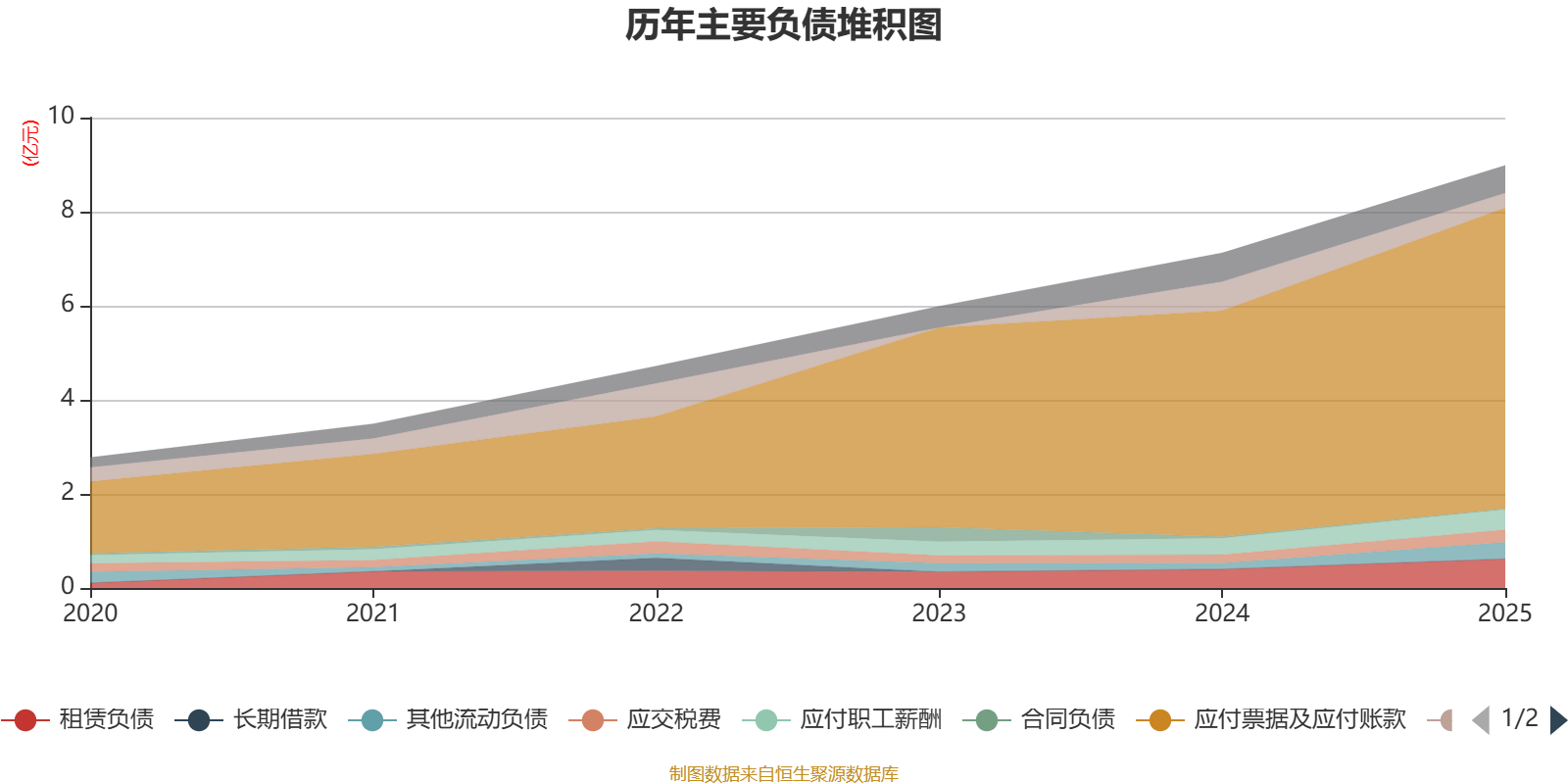 负债重大变化方面,截至2025年末,公司应付票据及应付账款较上年末增加33.05%,占公司总资产比重上升3.45个百分点;短期借款较上年末减少49.15%,占公司总资产比重下降1.76个百分点;其他流动负债较上年末增加173.4%,占公司总资产比重上升0.88个百分点;租赁负债较上年末增加54.98%,占公司总资产比重上升0.67个百分点。