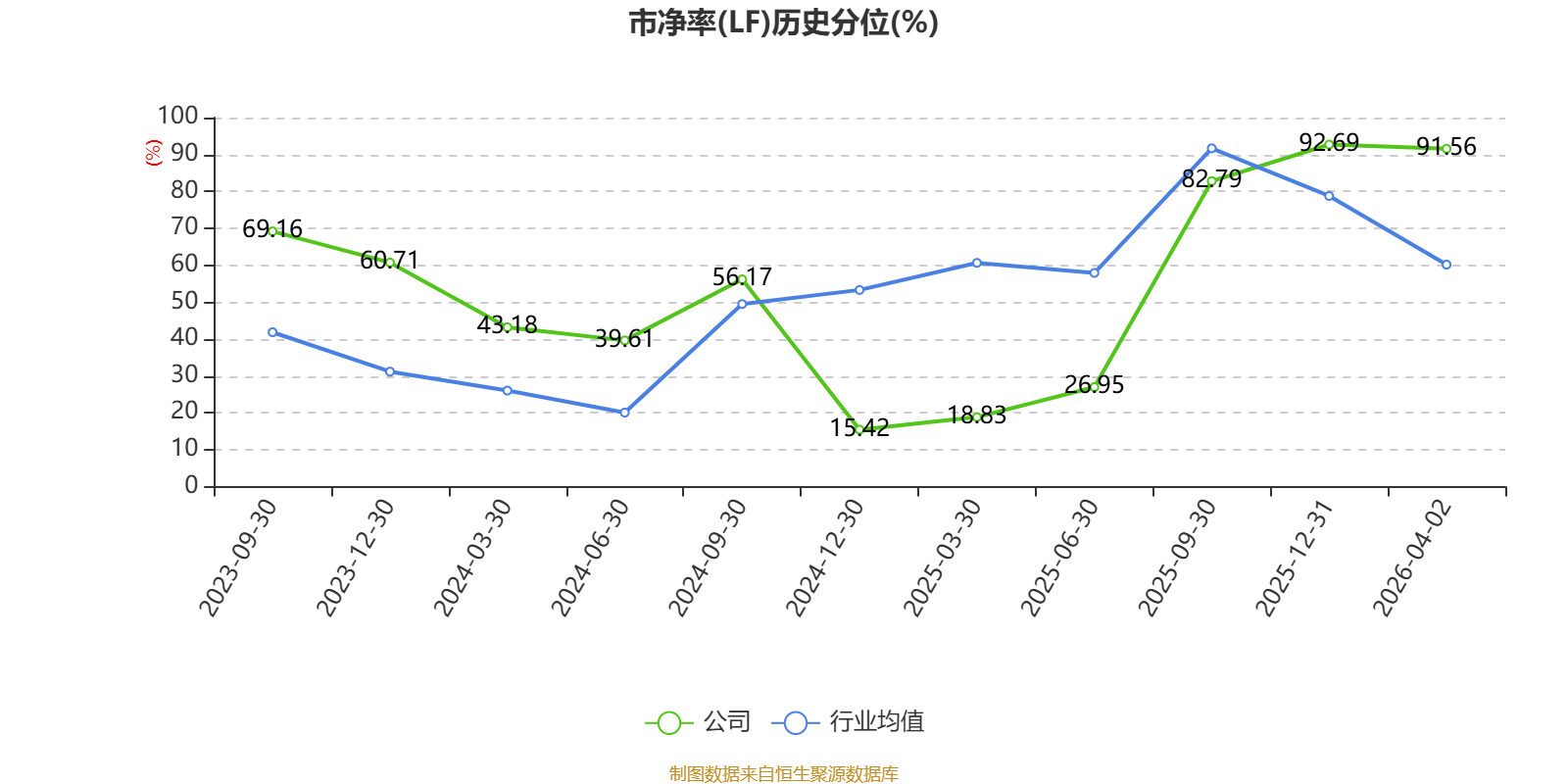 市盈率、市净率为负时,不显示当期分位数,会导致折线图中断。