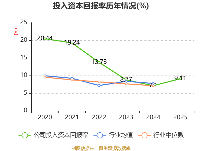 数据显示,2025年公司加权平均净资产收益率为10.15%,较上年同期上升2.42个百分点。公司2025年投入资本回报率为9.11%,较上年同期上升2.01个百分点。