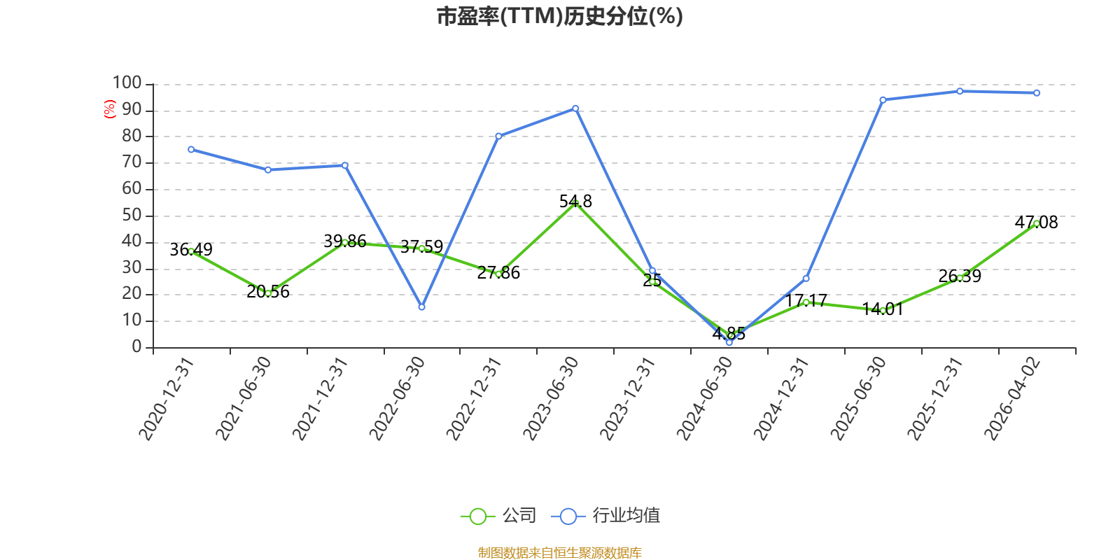 市盈率、市净率为负时,不显示当期分位数,会导致折线图中断。