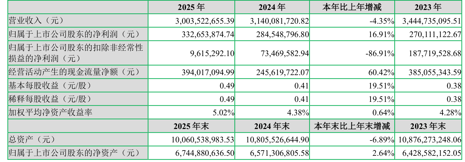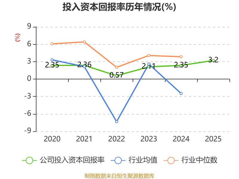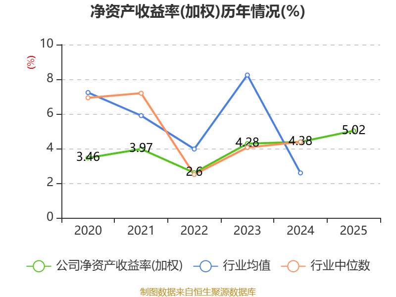 数据显示,2025年公司加权平均净资产收益率为5.02%,较上年同期上升0.64个百分点。公司2025年投入资本回报率为3.2%,较上年同期上升0.85个百分点。