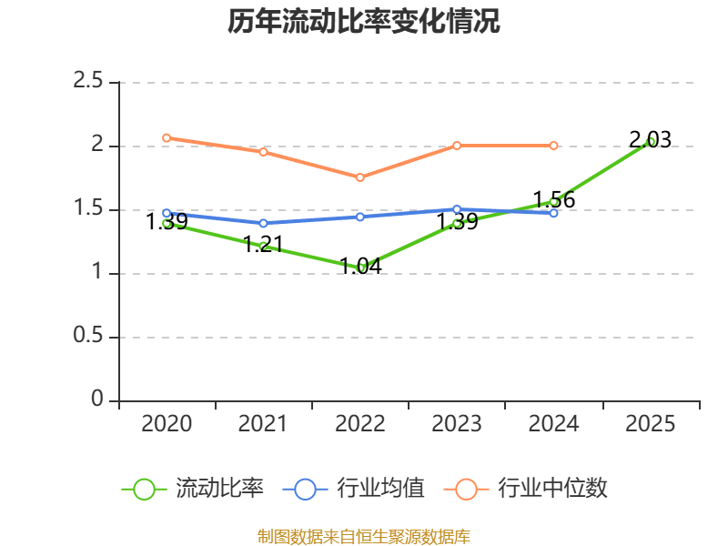2025年,公司流动比率为2.03,速动比率为1.77。