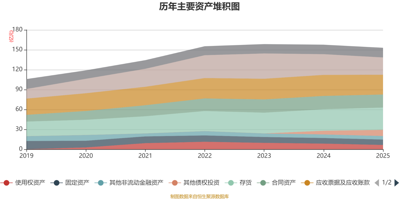 资产重大变化方面,截至2025年末,公司货币资金较上年末减少16.36%,占公司总资产比重下降2.74个百分点;其他债权投资较上年末增加66.33%,占公司总资产比重上升2.52个百分点;存货较上年末增加4.21%,占公司总资产比重上升1.52个百分点;使用权资产较上年末减少23.79%,占公司总资产比重下降1.15个百分点。