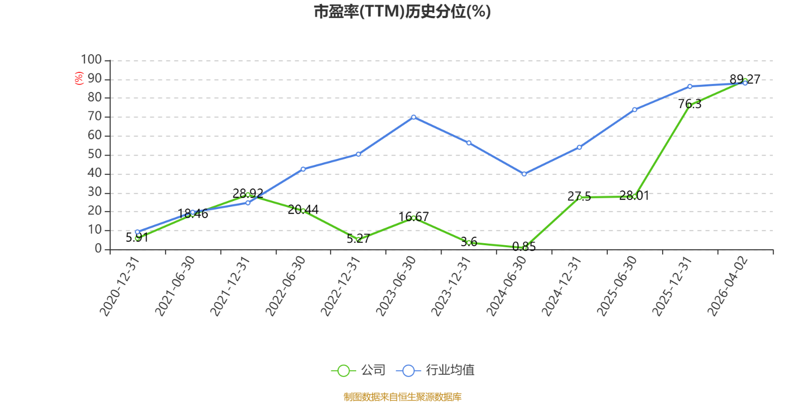 市盈率、市净率为负时,不显示当期分位数,会导致折线图中断。