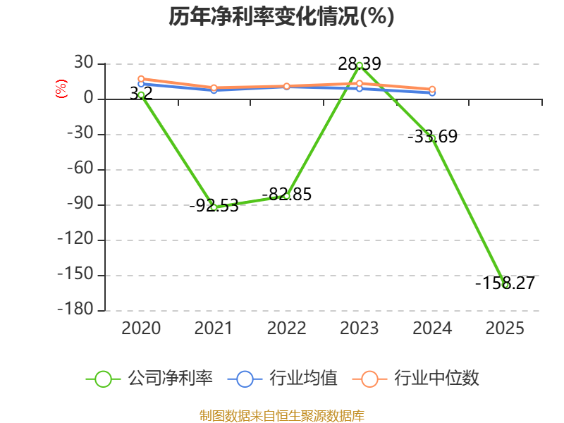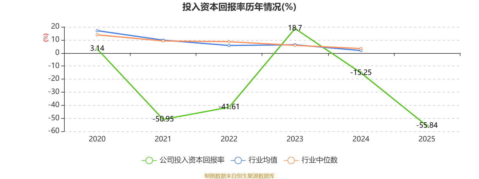 公司2025年投入资本回报率为-55.84%,较上年同期下降40.59个百分点。