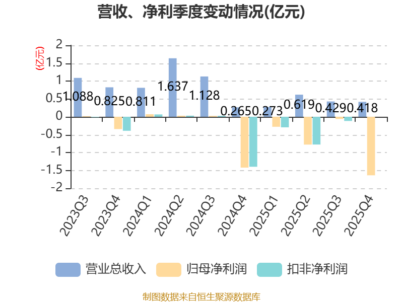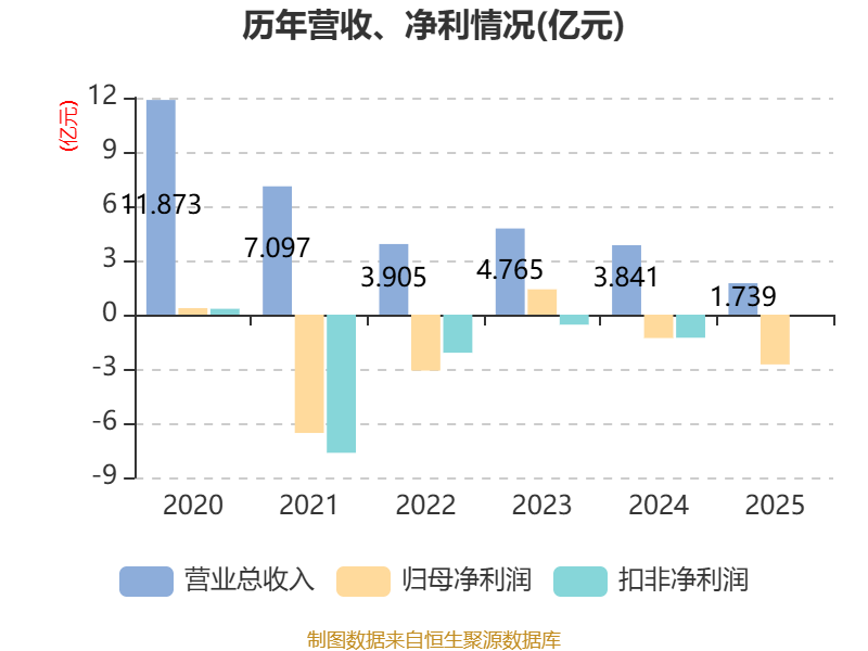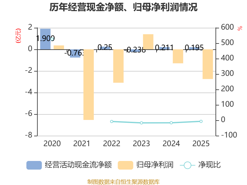 中证智能财讯智云股份(300097)4月3日披露2025年年度报告。2025年,公司实现营业总收入1.74亿元,同比下降54.72%;归母净利润亏损2.75亿元,上年同期亏损1.29亿元;经营活动产生的现金流量净额为1952.08万元,同比下降7.44%;报告期内,智云股份基本每股收益为-0.95元。