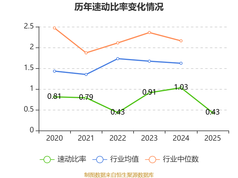 2025年,公司流动比率为1.03,速动比率为0.43。