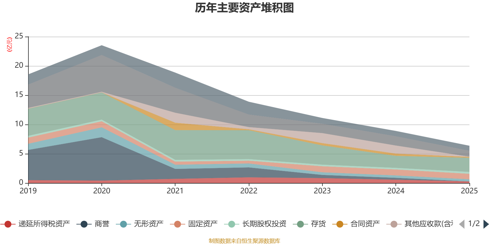 资产重大变化方面,截至2025年末,公司其他应收款(含利息和股利)较上年末减少96.68%,占公司总资产比重下降14.8个百分点;存货较上年末增加16.97%,占公司总资产比重上升14.72个百分点;商誉较上年末减少100%,占公司总资产比重下降3.6个百分点;固定资产较上年末减少8%,占公司总资产比重上升3.25个百分点。