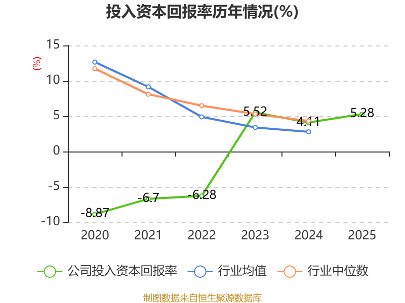 数据显示,2025年公司加权平均净资产收益率为6.31%,较上年同期上升1.8个百分点。公司2025年投入资本回报率为5.28%,较上年同期上升1.17个百分点。