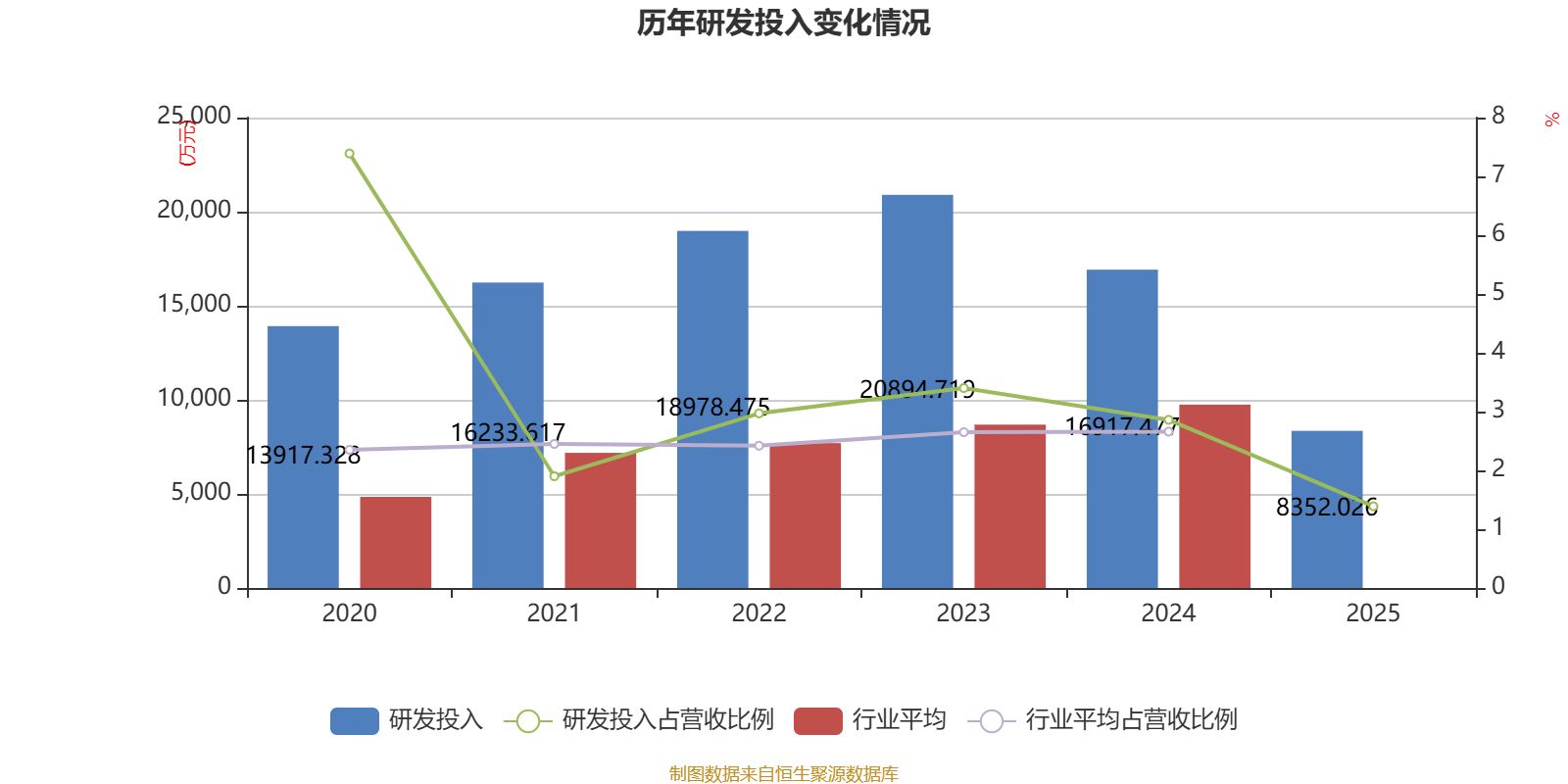 2025年全年,公司研发投入金额为8352.03万元,同比下降50.63%;研发投入占营业收入比例为1.39%,相比上年同期下降1.47个百分点。此外,公司全年研发投入资本化率为0%。