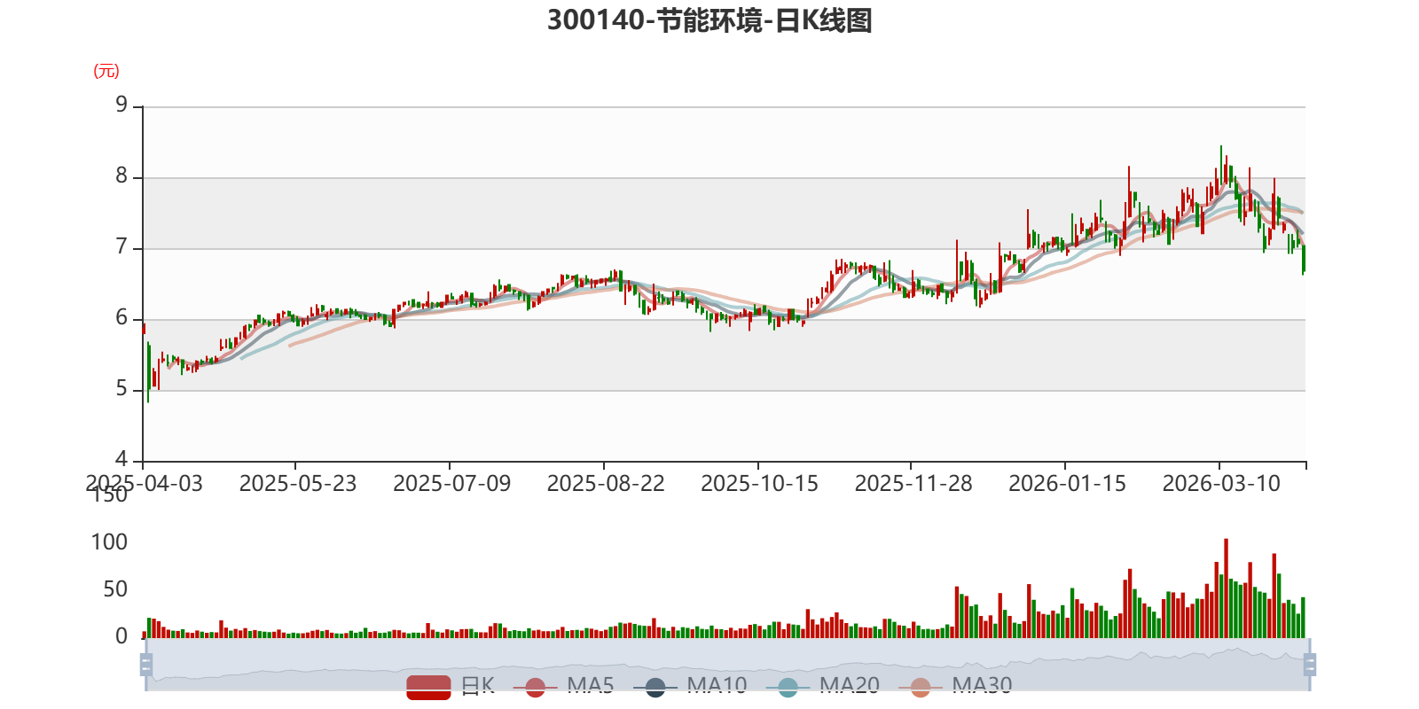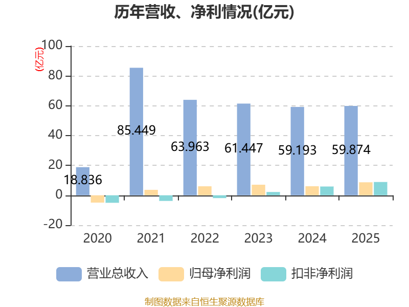 中证智能财讯节能环境(300140)4月3日披露2025年年度报告。2025年,公司实现营业总收入59.87亿元,同比增长1.15%;归母净利润8.71亿元,同比增长43.89%;扣非净利润8.9亿元,同比增长51.48%;经营活动产生的现金流量净额为22亿元,同比增长17.46%;报告期内,节能环境基本每股收益为0.2811元,加权平均净资产收益率为6.31%。公司2025年度分配预案为:拟向全体股东每10股派现0.6元(含税)。